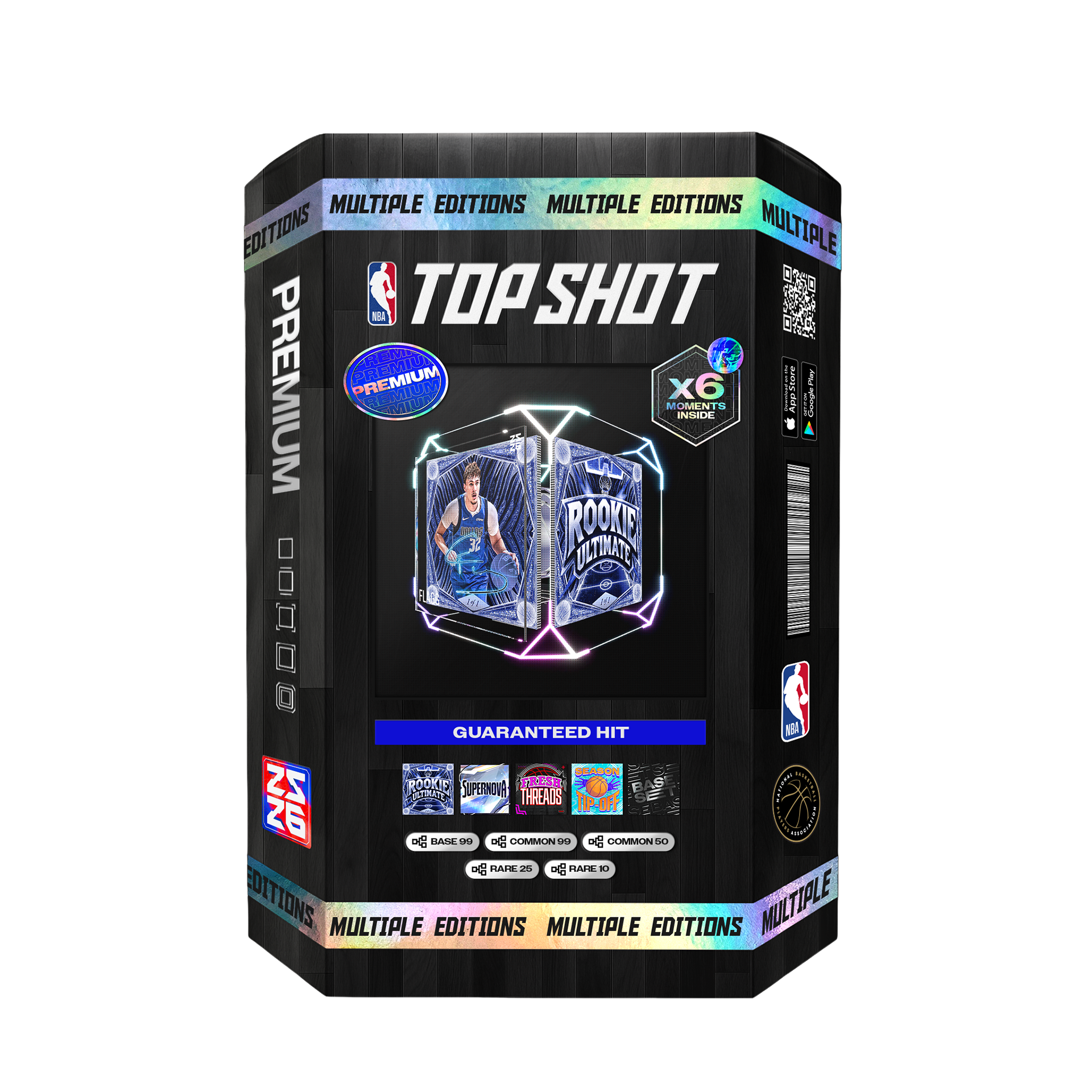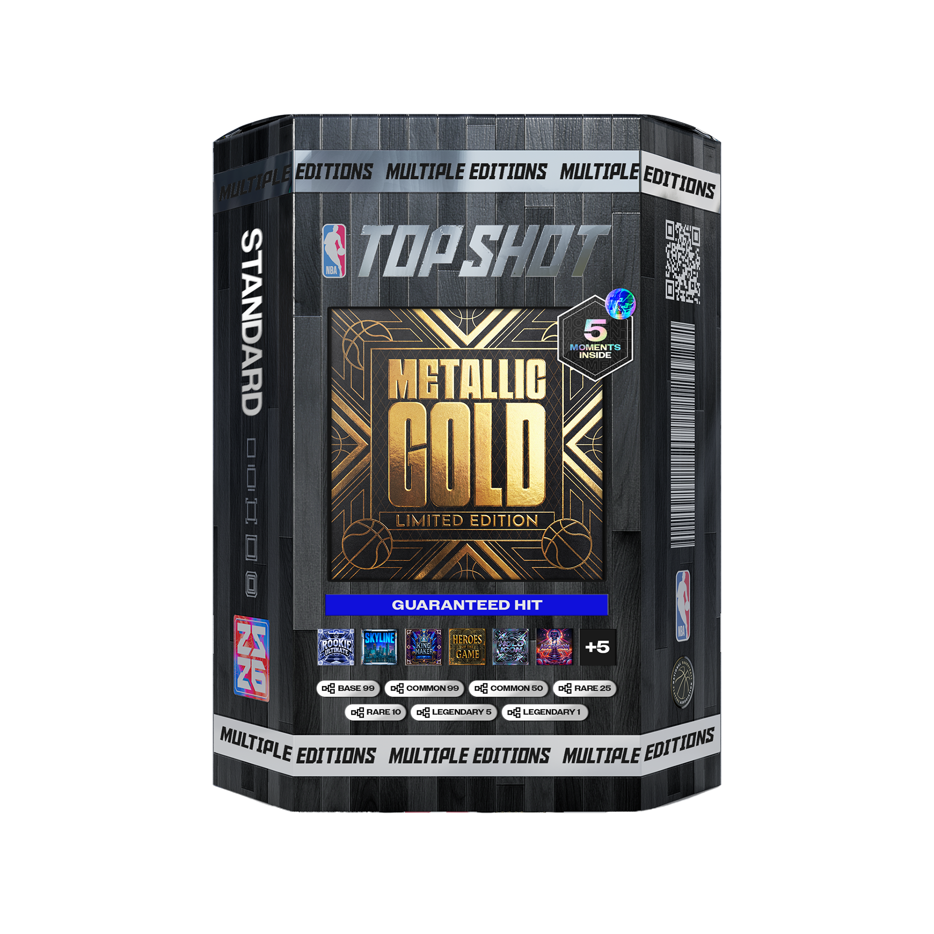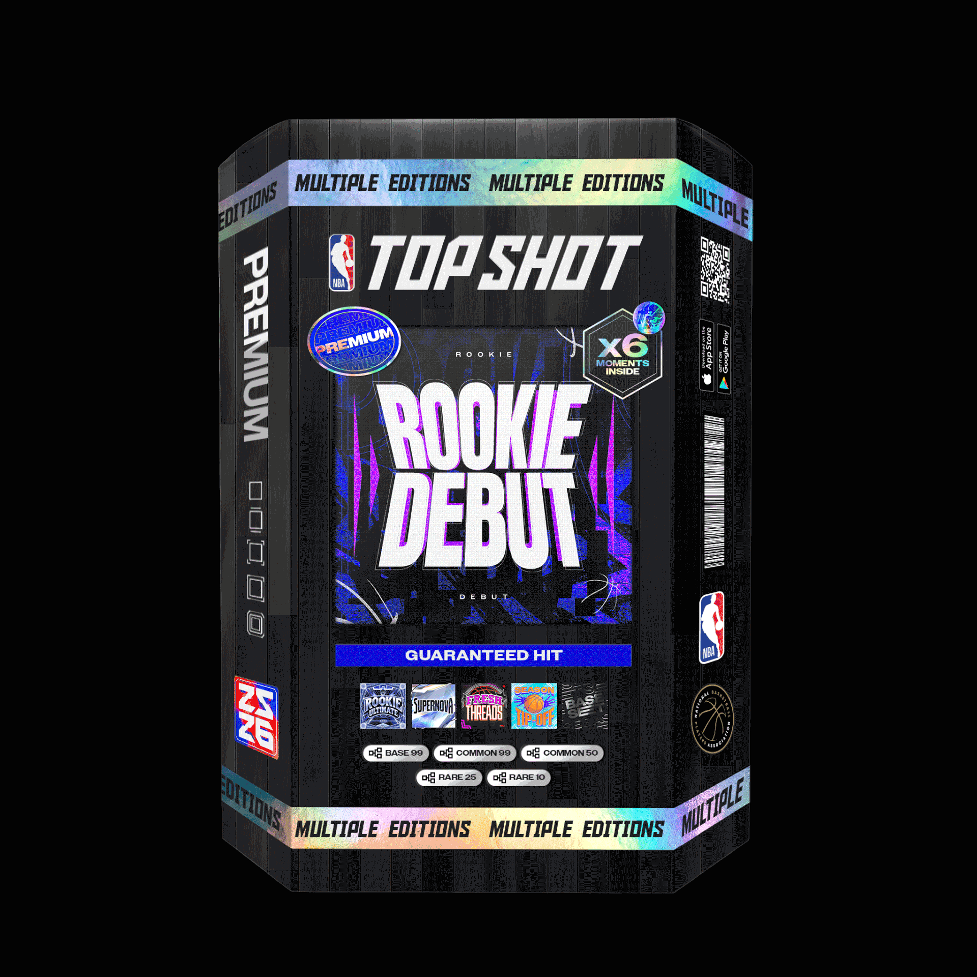 A scalable pack design system developed for NBA Top Shot, supporting a range of product formats including utility packs, hard packs, boxes, and cases. The system establishes a consistent visual framework while allowing flexibility across different tiers and releases, ensuring cohesion across product, marketing, and seasonal campaigns within the NBA ecosystem.